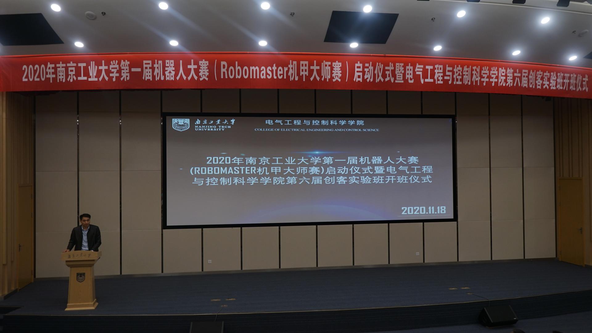 副经理方志宣读第五届创客实验班优秀学员的表彰决定,勉励新一届创客实验班学员向优秀学长学姐学习,积极创新、主动质疑,提升创新创业能力。校团委副书记王郁超为第五届创客实验班优秀学员代表颁奖。公司分团委书记范楚晗宣读第六届创客实验班学员名单,介绍“科创领航计划”。第五届创客实验班优秀学员代表、全国老员工机器人大赛一等奖获得者何牧天同学分享自己在创客实验班的收获,冷亚伦同学代表第六届创客实验班新成员表达了投身科创的决心。全国老员工机器人大赛公司指导教师、创客实验班导师代表沈捷老师结合往届指导经验,希望同学们能够培养自身主动学习、团结协作和坚韧不拔的素质,创造出属于自己的独一无二的作品。与会领导共同启动公司第一届机器人大赛(Robomaster机甲大师赛)。
