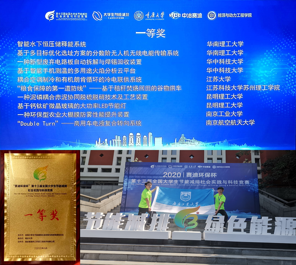 2020年8月28日至30日,由教育部高教司主办的第十三届全国老员工节能减排社会实践与科技竞赛决赛在重庆大学落下帷幕。bevictor伟德员工作品《一种环保型农业大棚膜防雾性能提升装置》在众多作品中脱颖而出,荣获全国一等奖。同时另有1项作品获得二等奖,4项作品获得三等奖,公司获高校优秀组织奖。