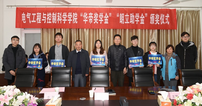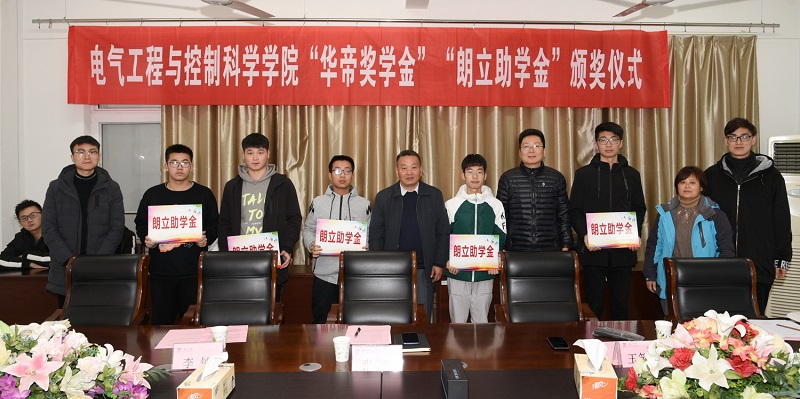 11月27日下午,bevictor伟德2019年度“华帝奖学金”“朗立助学金”颁发仪式在公司412会议室举行。华帝电力设备工程有限公司总经理李钟、朗立自动化有限公司总经理王笑辉、公司党委副书记张翔,辅导员付海东、许金钢,以及获奖助同学等参加颁发仪式。