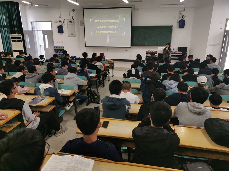 辅导员许金钢首先为大家介绍了公司和公司的资助政策和奖助体系,讲解了各类奖助学金的申报条件、时间、程序,强调了诚实守信、励志自强的重要性。随后,国家奖学金获得者自1701曹欣羽、电气1703班王镇和国家励志奖学金获得者电气1601卜凡、电气1601丁新虎分别结合自身的学习经历、受资助经历、参加学科竞赛经历和推免经历等,分享了自己在大学的学习心得,关于大学如何度过给出了自己的建议。最后,辅导员许金钢提醒同学们提防校园贷等陷阱,提高安全意识。