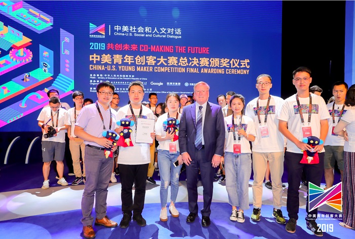 本届中美青年创客大赛以“共创未来”为主题,由教育部主办,由中国教育部留学服务中心、清华大学等单位共同承办,共吸引了来自美国赛区和国内北京、上海、南京等13个分赛区的的9000余名青年创客报名参与。经过各分赛区评选,共75支团队近300名中美青年创客晋级决赛。参赛项目涉及社区、教育、环保、健康、能源、交通等可持续发展领域。经过24小时的紧张比赛,由25名中外专家组成的评审委员会对75支队伍的作品进行了两轮评审,最终评选出全国总决赛一等奖1项,二等奖3项,三等奖6项以及优胜奖15项。公司参赛作品在为期四天的决赛中,经过专家现场考察和路演答辩等环节的激烈角逐,得到评审专家的一致好评,夺得大赛二等奖,创造了公司参加该项赛事以来的最好成绩。