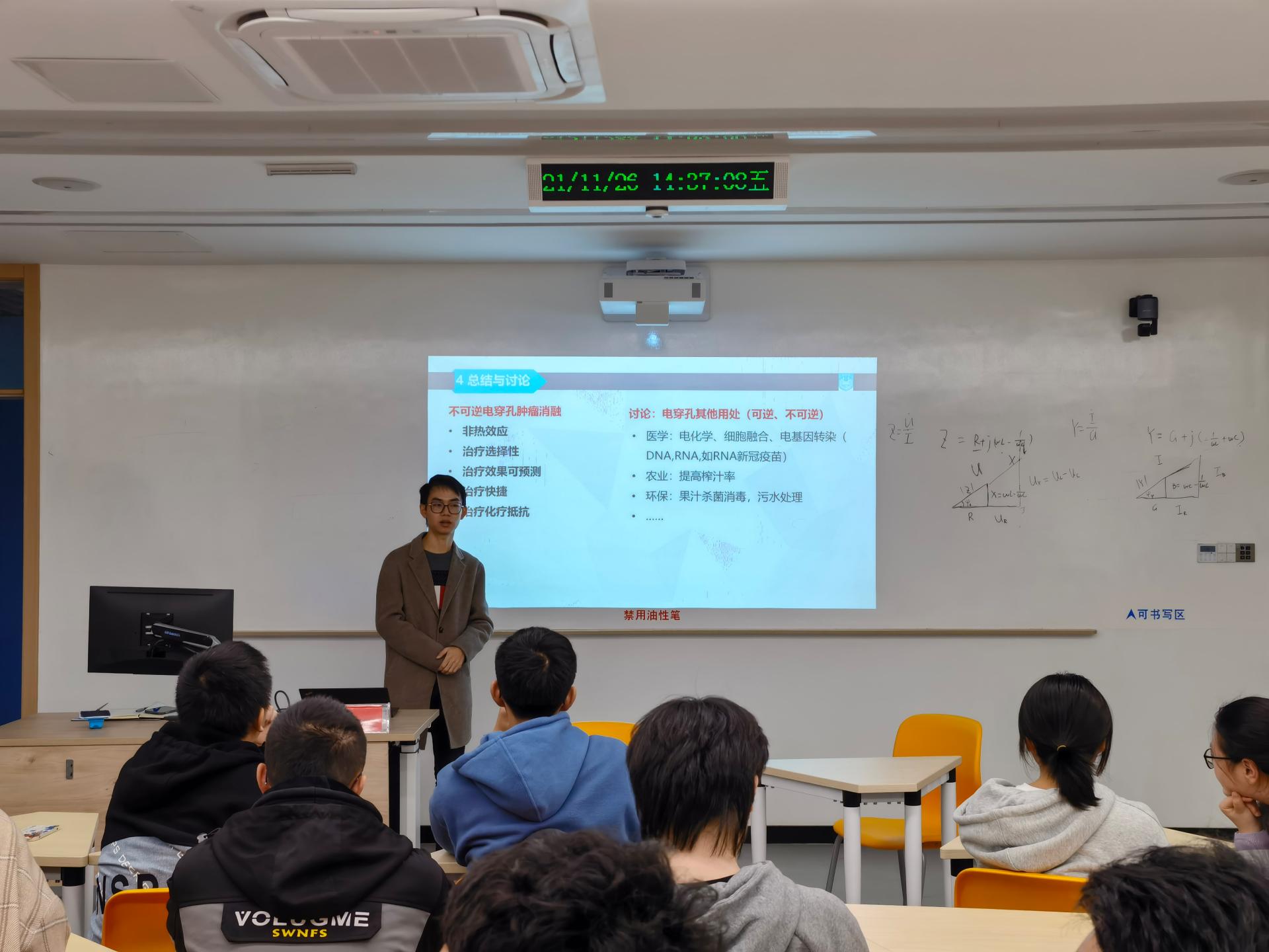 接着,赵亚军老师以“高压脉冲电场诱导细胞电穿孔效应”为题作首场报告。赵老师详细介绍电穿孔技术的研究方法和技术应用。结合实际案例,他鼓励大家认真学习科学知识,传承科学精神,努力打破国外垄断壁垒。在互动环节中,赵老师耐心细致地为员工解答疑惑。