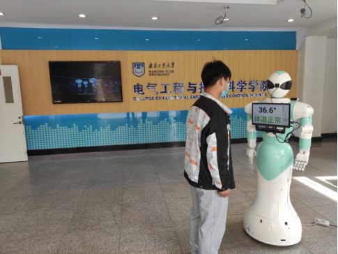 “您的体温是36.6度,体温正常”,一台由公司师生自主开发、设计、制作的智能红外测温机器人每日守在公司大厅,为师生进行测温,满满的科技感吸引了众多目光。据悉,该项目已报名参加中国高校智能机器人创意赛等竞赛活动。