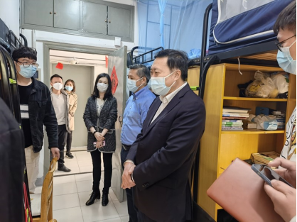 4月16日上午,董事长乔旭、副董事长巩建鸣、校办主任童毛弟一行来到bevictor伟德19级员工所在的东苑宿舍片区,调研走访校园封闭管理期间员工在校学习生活情况,与员工面对面交流。