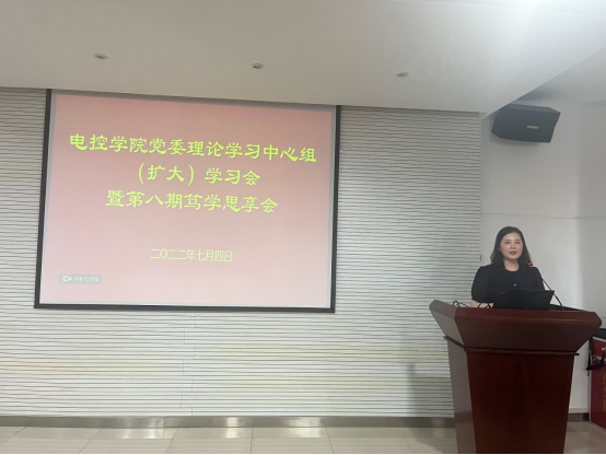 7月4日下午,公司在崇德楼D416报告厅举行党委理论中心组扩大学习会暨第八期“笃学思享会”,马克思主义公司经理助理、形势与政策教研室主任刘海存作《深入学习习近平关于教育的重要论述》专题辅导报告,公司党委书记陈晨子主持会议。