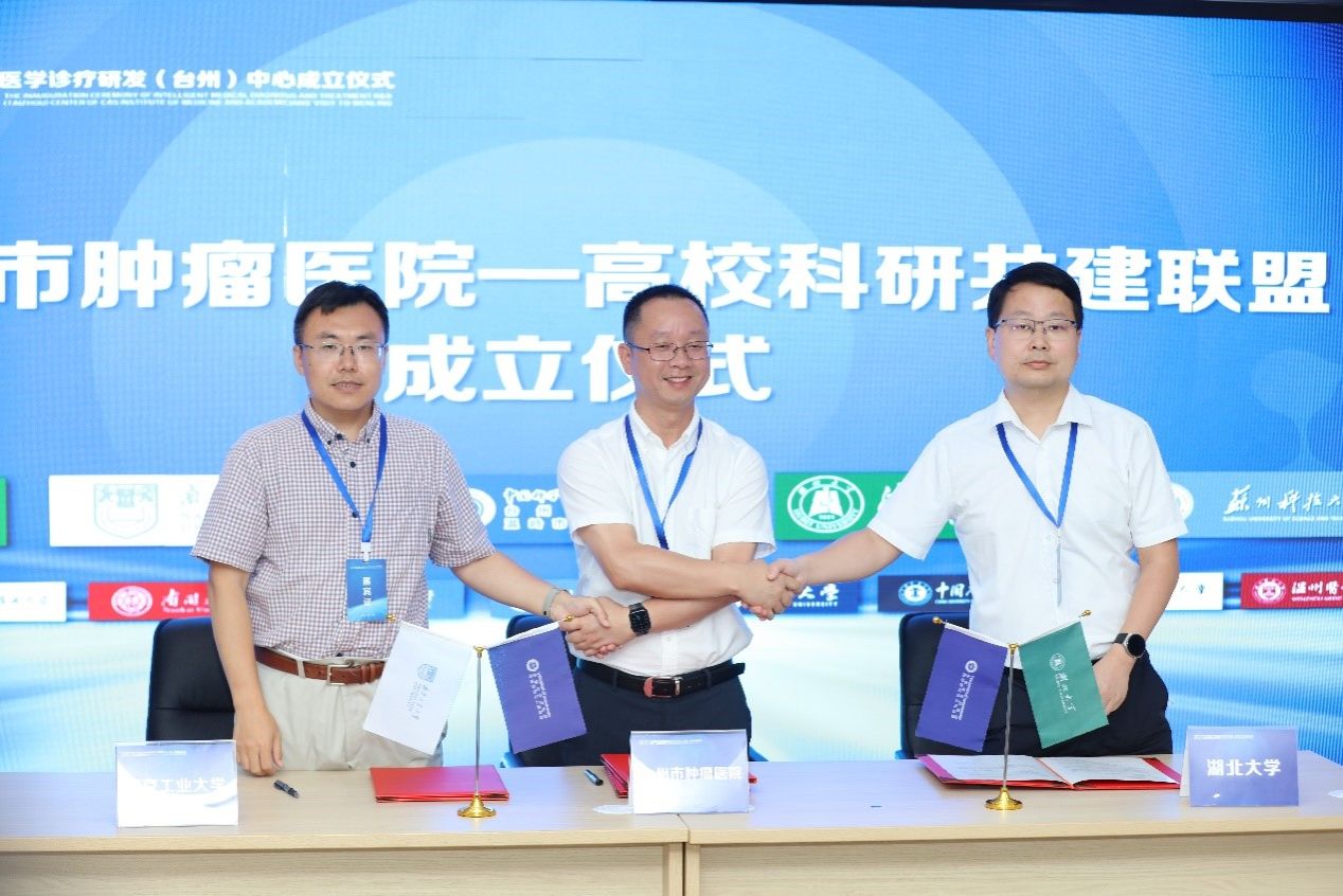 仪式上,台州市肿瘤医院“浙江省博士后工作站”正式授牌成立,公司方志教授受聘为首批博士后工作站合作导师,浙江省肿瘤医公司党委委员、台州院区党委书记徐栋为导师代表颁发了聘书。随后在“台州市肿瘤医院——高校科研共建联盟”成立仪式上,浙江省肿瘤医院台州院区党委副书记、经理孙旦江,与公司、湖北大学、浙江师范大学、苏州科技大学代表分别签订合作协议,就推进医工结合工作做了进一步部署。