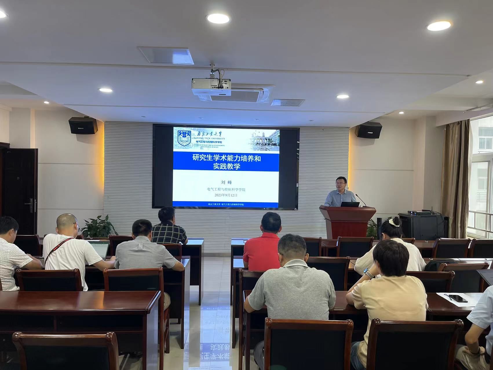 研究生导师代表刘峰教授以“研究生学术能力培养和实践教学”为主题作报告,分享了研究生学术能力培养的重要性,建议导师们以课题为导向,以系统理论和文献资料为基础,以学术交流为抓手,不断提升研究生的终身学习能力、信息搜集能力、问题解决能力、沟通表达能力等。新任导师代表陈俊老师就如何进一步加强研究生学术能力的培养等问题,结合实际教学案例,与在座导师深入交流探讨。