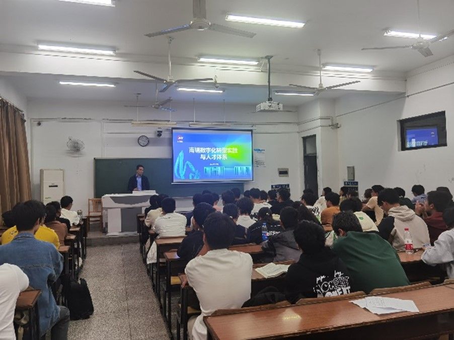 随后,徐发喜部长为智能制造工程专业2023级新生做了题为南钢数字化转型实践与人才体系的报告,向同学们介绍了智能制造在南钢的应用,以及行业面临的挑战与机遇,直观地展示了智能制造专业的就业前景。
