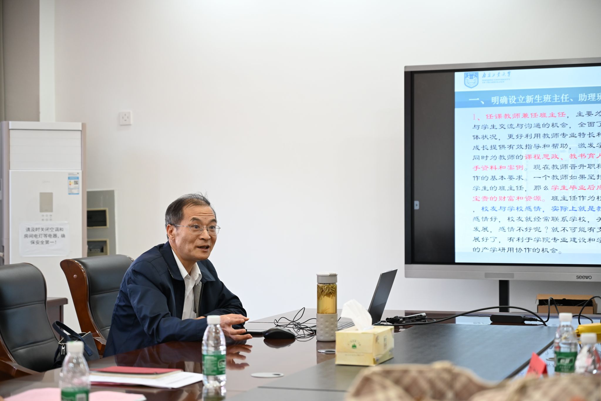 会上,学办主任潘志颖通报了全院学风建设情况,分析了近几年本科生不及格率较高的重点课程分布情况和发展态势。辅导员朱行健就23级新生入学教育情况做了重点发言。