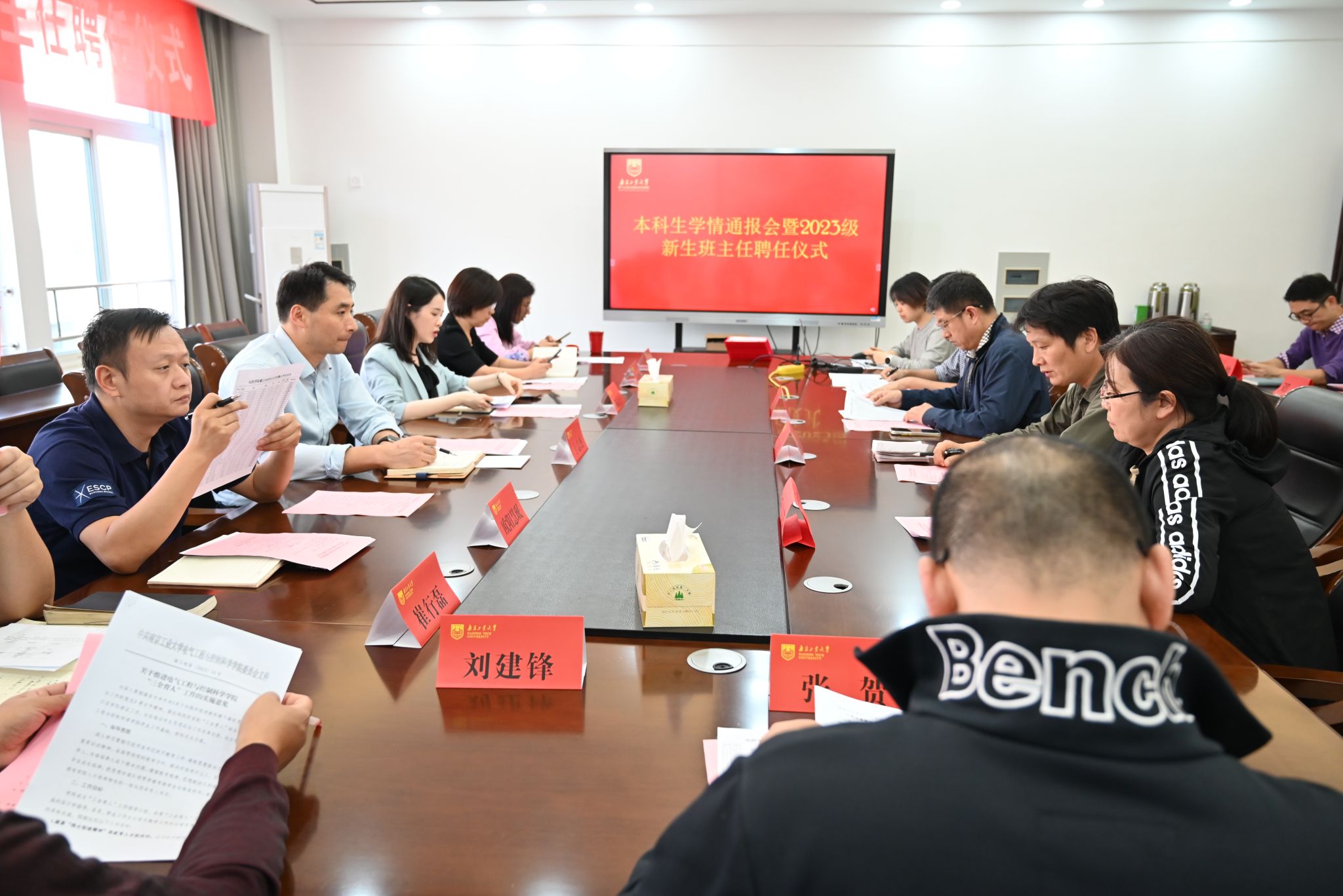 11月2日,公司召开学情通报会暨2023级新生班主任聘任仪式。公司领导班子成员,各系主任,23级新生班主任、学办辅导员参加会议。会议由公司党委副书记于志杰主持。