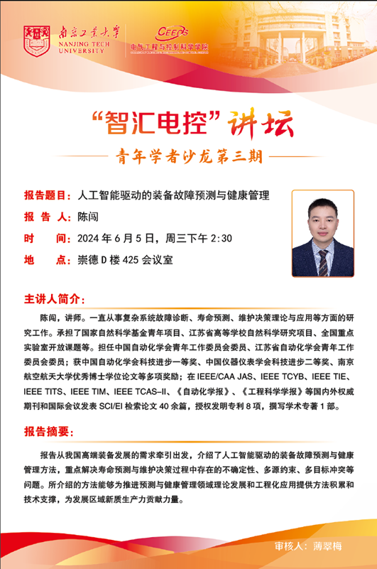 为活跃公司学术科研氛围,促进青年教师交流与学习。近日,公司在崇德楼D425举办“智汇电控”讲坛第三期“青年学者沙龙”。沙龙邀请公司青年教师李佳承作题为“无线电能传输系统的磁耦合器设计与应用”的专题报告;青年教师陈闯作题为“人工智能驱动的装备故障预测与健康管理”的专题报告。