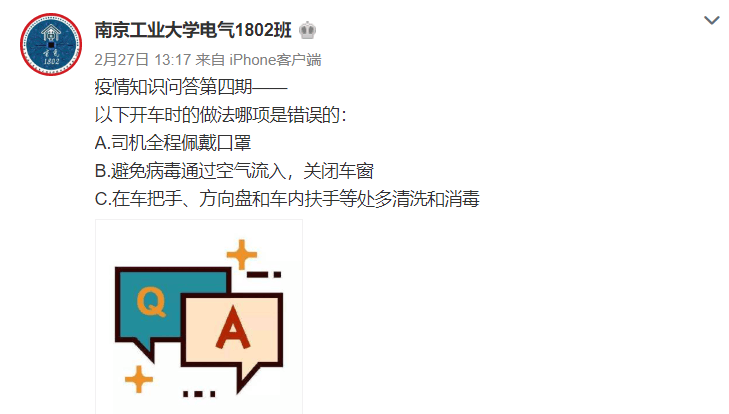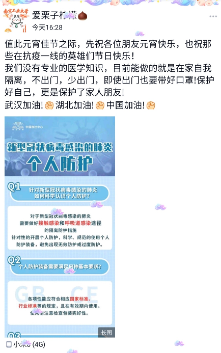 除了班级集体行动外,许多同学也纷纷运用网络新媒体发声,协助做好疫情防护宣传、政策措施解读、健康防护知识科普、稳定社会情绪等有关工作。