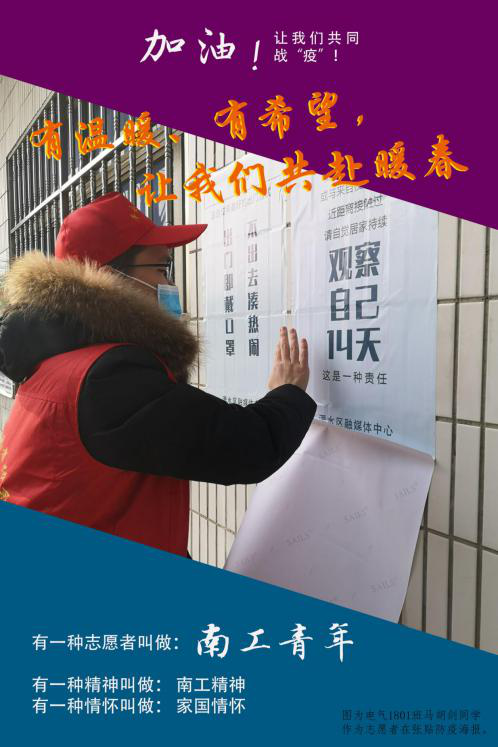 电气1801班制作宣传海报,他们说“有温暖、有希望,让我们共赴暖春!”