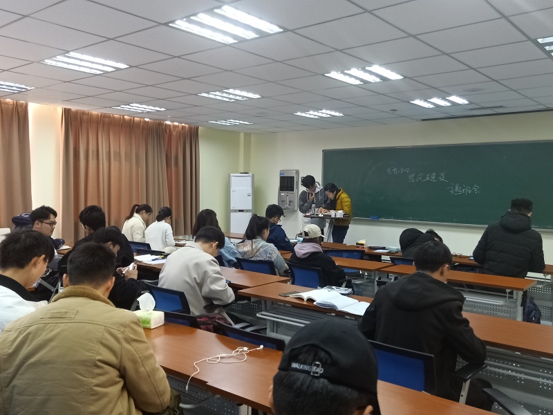 班会上,同学们针对本学期的工作活动计划进行了深入交流,大家对优良学风建设工作有了比较清晰的认识。班干部在班会批评了不良学风的行为表现,提醒同学们引以为戒。各宿舍长依次发言,交流本宿舍的学习状态。针对如何改善学习方法和提高学习能力,同学们进行了发言讨论。班长对讨论情况进行了总结,并组织同学们签署了《诚信考试承诺书》。班主任浦晨岚老师指出,学风建设是同学们学习、成长的基础和前提,希望同学们端正学习态度、保持学习热情、明确目标并做好规划。