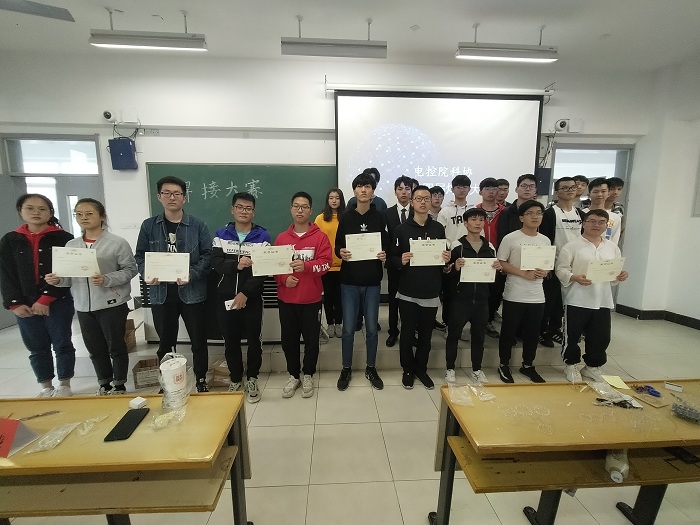 本次大赛共吸引了计算机、土木、交通、机械等多个公司的广泛参与,经过初赛激烈的角逐和评委的精心挑选,共有28组成功进入复赛。本次复赛比赛内容为LED灯塔焊接,决赛现场气氛热烈,选手们左手拿焊接板,右手拿电烙铁,小心翼翼,屏息凝神,胆大心细,力求把灯塔的每一个原件都焊得精致美观。经过激烈角逐,大赛最终决出一等奖一名,二等奖两名,三等奖两名以及优胜奖两名。来自电子1602班的张博森组以平均分91.3分的高分荣获一等奖。