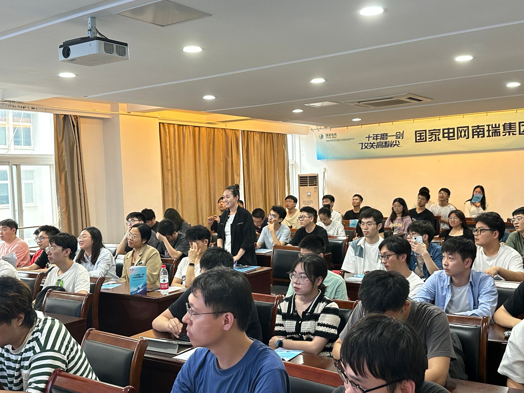 樊荣主管以整体行业为背景、以集团主营业务方向为出发,介绍了企业的基本信息、业务概况和公司未来发展等内容。随后,就毕业生最为关注的公司人才需求情况、福利待遇及员工未来职业规划等信息,袁亚洲师兄根据亲身经历,结合当下行业发展背景,向在场的同学们进行了介绍。在拓宽同学们知识面的同时,也让同学们对于招聘岗位的能力需求及就业背景有了更为清晰的认识。与会同学们就暑期实习、薪资待遇、工作内容与晋升渠道等方面与樊主管进行沟通交流,樊主管耐心的对同学们的提问作了专业的解答,并欢迎同学们到南瑞集团实习、就业。