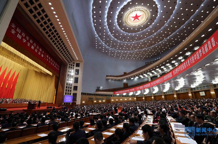 中共中央总书记、国家主席、中央军委主席习近平向会议发来贺信,代表党中央向大会召开表示热烈祝贺,向全体青年表示诚挚问候并表达了殷切期望。总书记在贺信中说,紧跟时代砥砺前行,担当责任奋发有为,是我国青年的光荣传统,也是党和人民对广大青年的殷切期望。他希望广大青年自觉按照党和人民的要求锤炼自己、提高自己,做到志存高远、德才并重、情理兼修、勇于开拓,在火热的青春中放飞人生梦想,在拼搏的青春中成就事业华章。并要求各级党委和政府加强对青年工作的领导,为广大青年成长成才、建功立业创造良好环境和条件,帮助和支持广大青年在时代的舞台上展现风采、发光发热,努力为实现“两个一百年”奋斗目标、实现中华民族伟大复兴的中国梦贡献青春的激情和力量。